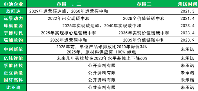 值得注意的是,有两家电池企业早在2021年便做出了碳中和承诺。