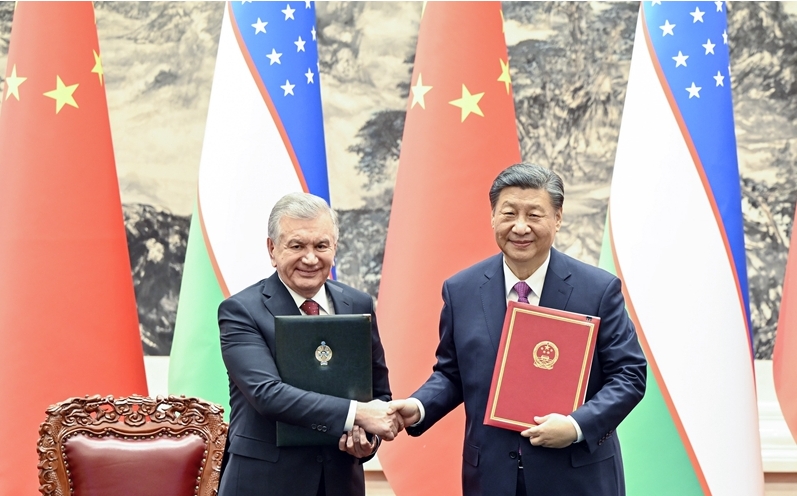 1月24日下午,国家主席习近平在人民大会堂同来华进行国事访问的乌兹别克斯坦总统米尔济约耶夫举行会谈。两国元首宣布,中乌决定发展新时代全天候全面战略伙伴关系,在更高起点上推动构建中乌命运共同体。