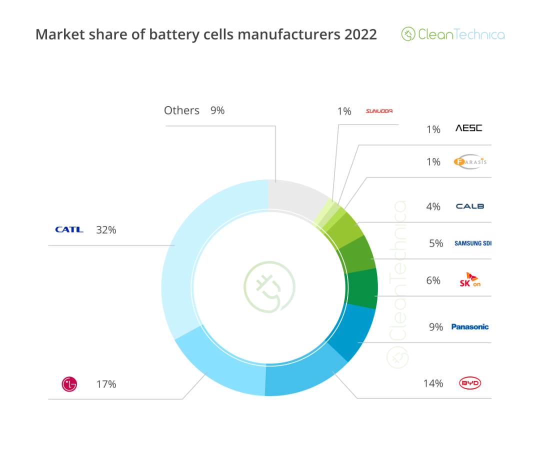 LG的份额在2023年有所下降,从2022年的17%降低到2023年底的15%。Clean Technica认为这是由于客户端销量不及预期所致——通用汽车的电动车市场表现乏力,一些重要车型(如雷诺Zoe)临近产品生命周期末期,其他一些客户(如奔驰或福特)的销量增长放缓。