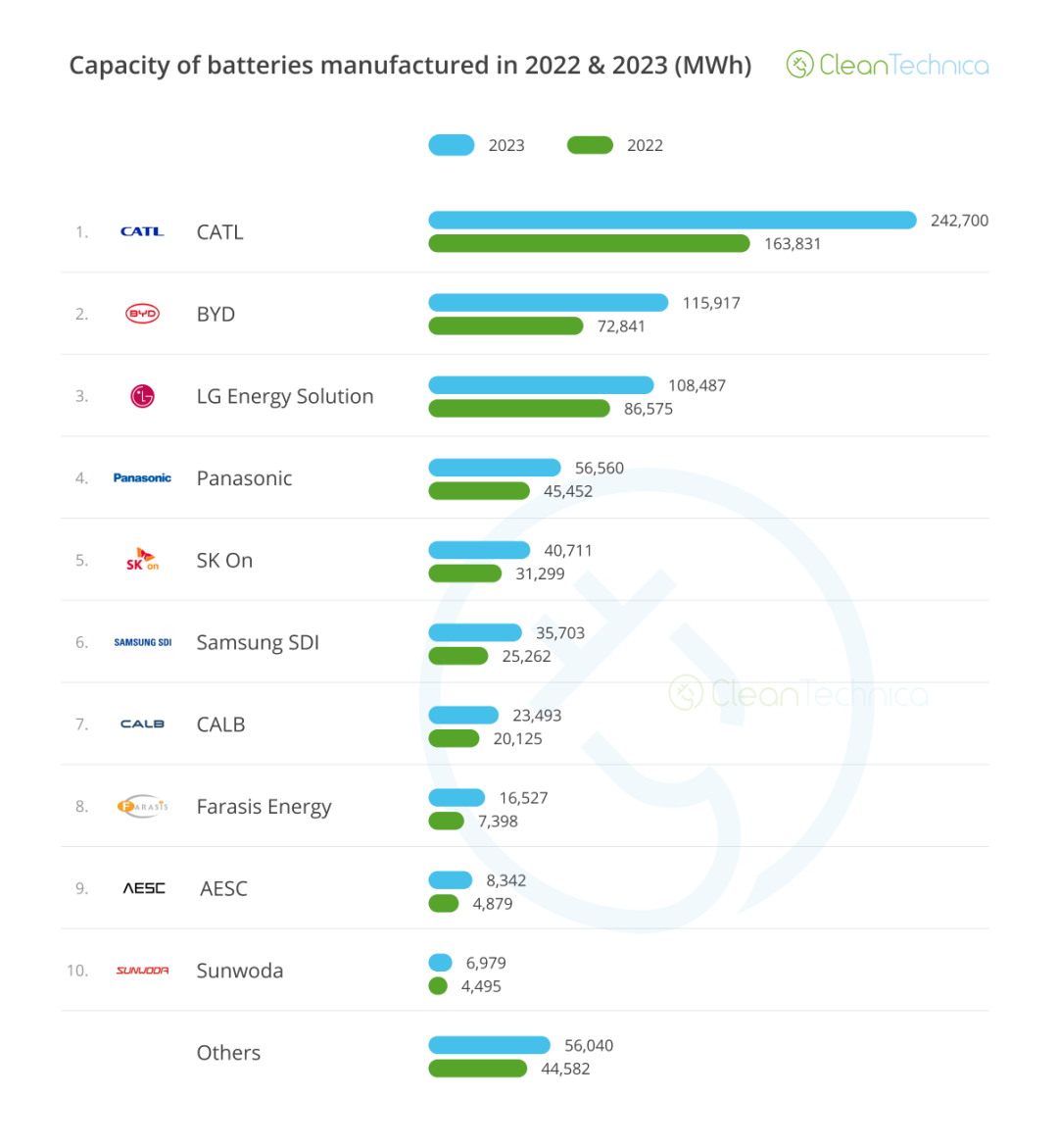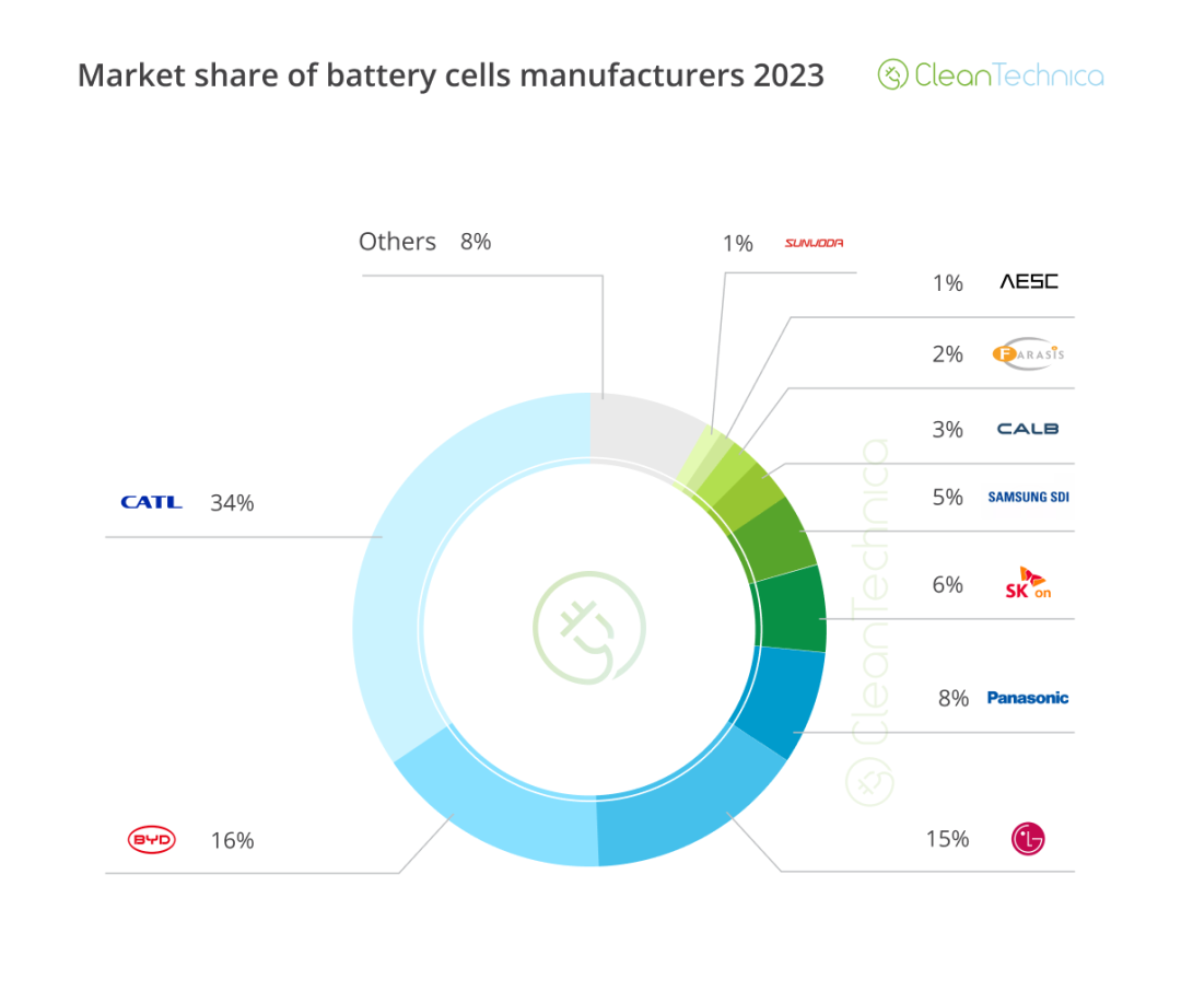 Clean Technica认为全球市场需求的变化,正推动主要电池生产厂商在行业中的影响力和竞争排名发生变化,并将持续影响到2024年。
