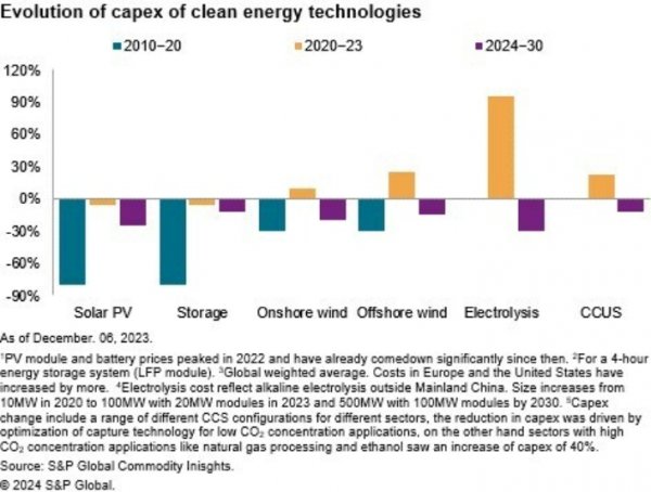 2.到2030年,清洁能源技术的平均资本支出将再下降15%-20%