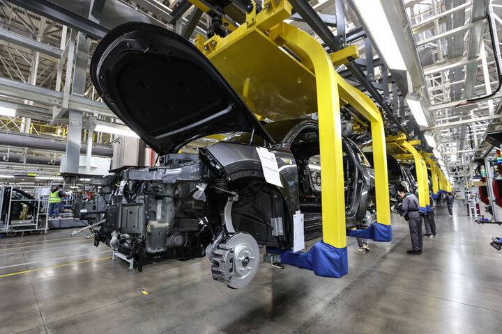 理想汽车常州基地的工人在加紧生产(2023年2月15日摄)。