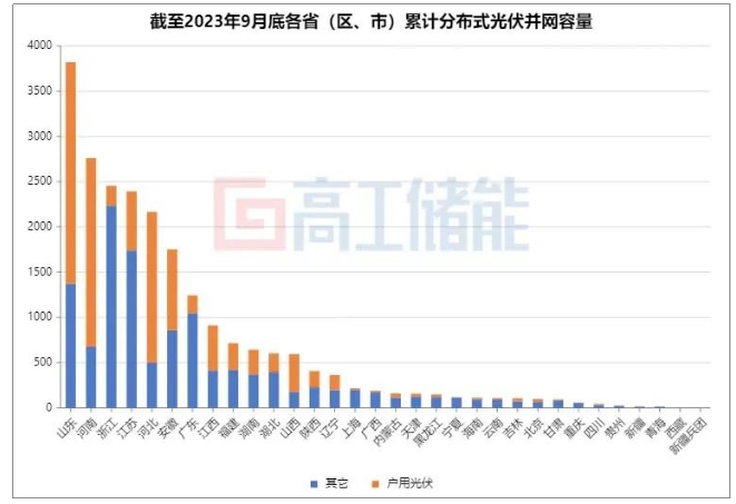 国家能源局数据显示,2023年前三季度,全国光伏新增装机128.94GW,其中,分布式光伏新增装机67.14GW(超过集中式5.34GW),同比增长90%,占比达52%。在全国光伏新增装机中,分布式光伏新增装机已经连续3年占比50%以上。