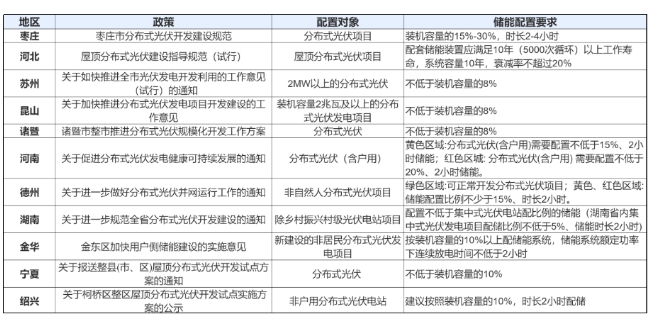 多地消纳“告急”的背景下,储能成为不少省份解决分布式光伏并网消纳问题的重要手段之一,目前已有12地出台了分布式储能配储的相关政策或者指导意见,超过10个区域提出了明确的配储比例。