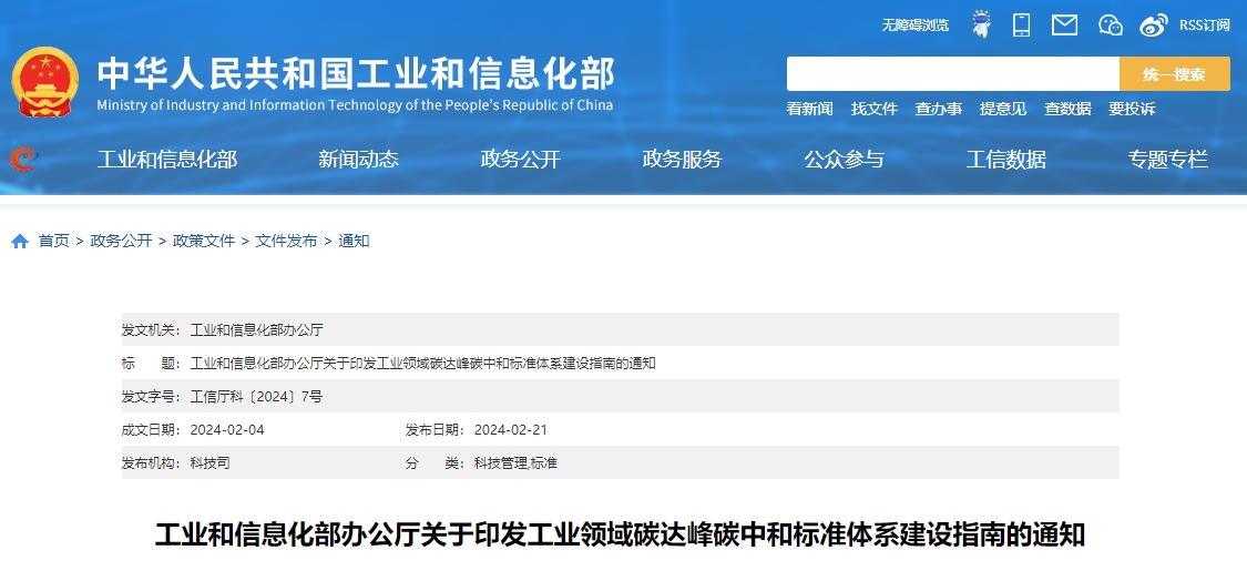 为切实发挥标准对工业领域碳达峰碳中和的支撑和引领作用,工业和信息化部依据《新产业标准化领航工程实施方案(2023-2035年)》《工业领域碳达峰实施方案》《建立健全碳达峰碳中和标准计量体系实施方案》等,组织编制了《工业领域碳达峰碳中和标准体系建设指南》。现印发给你们,请结合本地区、本行业、本领域实际,在标准化工作中贯彻执行。