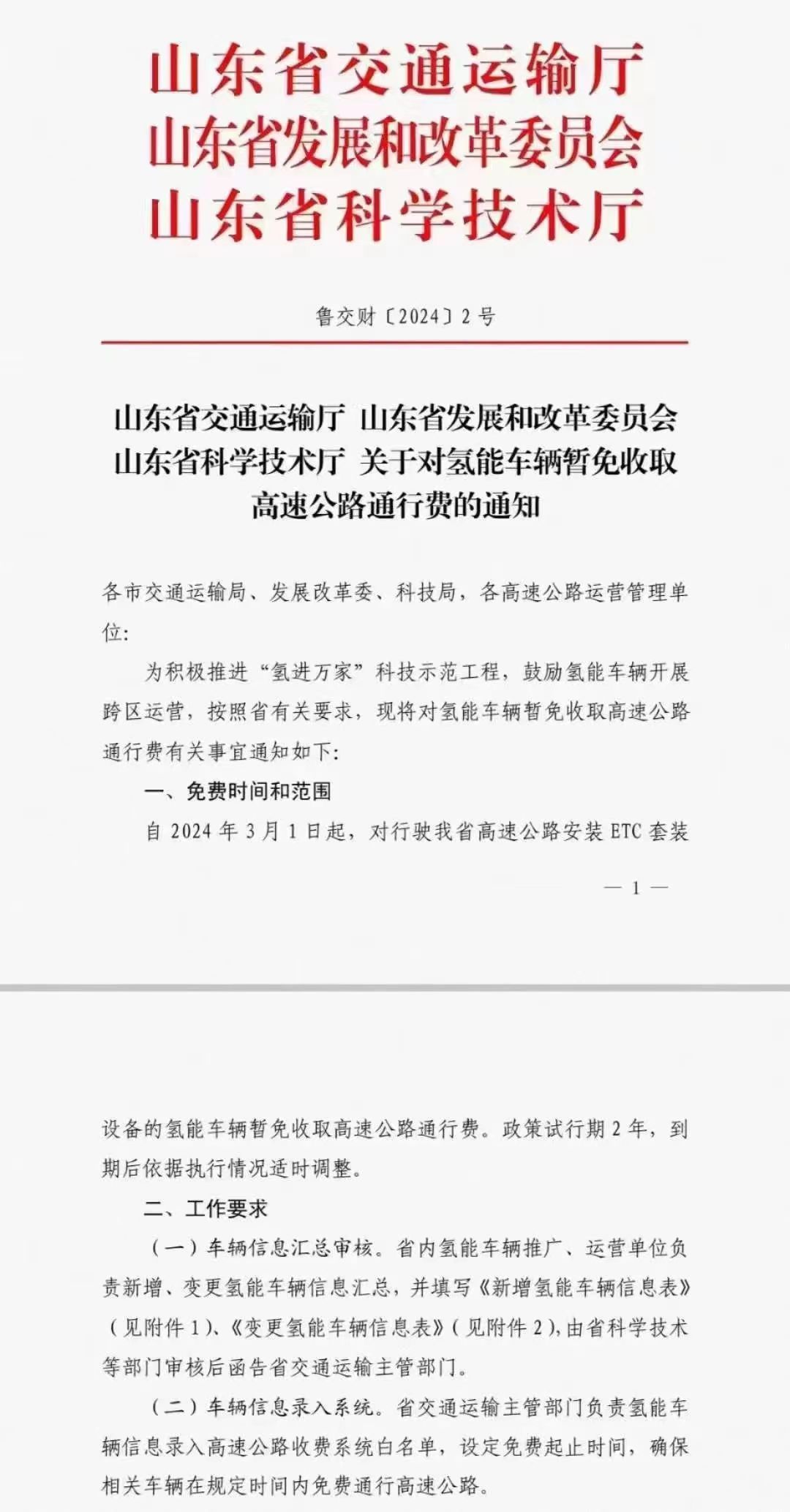 东风护航!山东省:氢能车辆暂免收取高速公路通行费