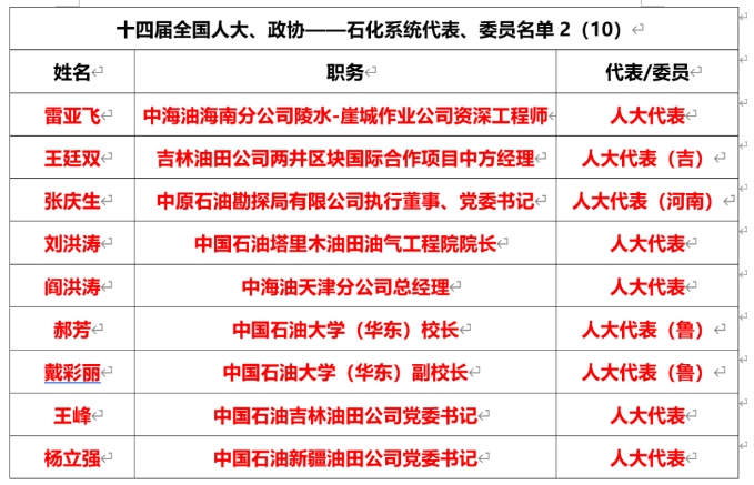 (1)汪东进 中国海油董事长、党组书记(政协委员)
