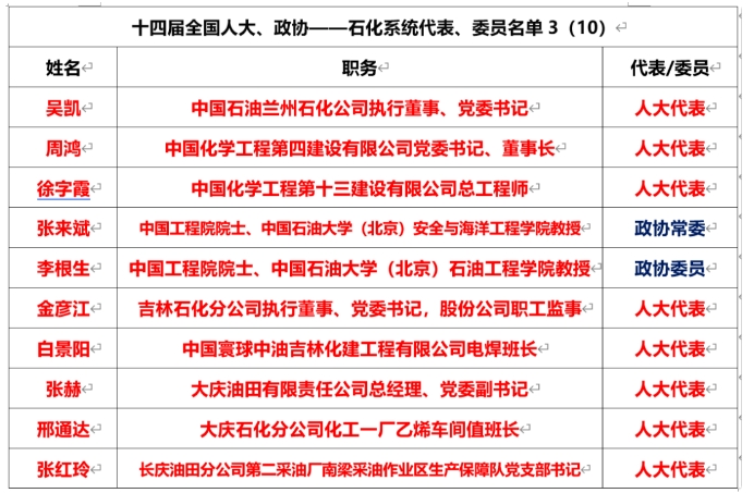 (1)戴厚良 中国石油集团董事长、党组书记(政协委员)