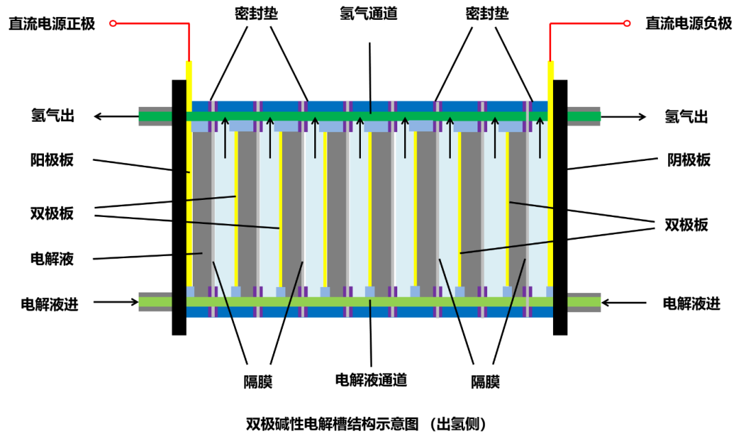 碱性电解水(Alkaline Water Electrolysis,ALK)制氢是指在碱性电解质环境下进行电解水制氢的过程,电解质一般为30%质量浓度的KOH溶液或者26%质量浓度的NaOH溶液。