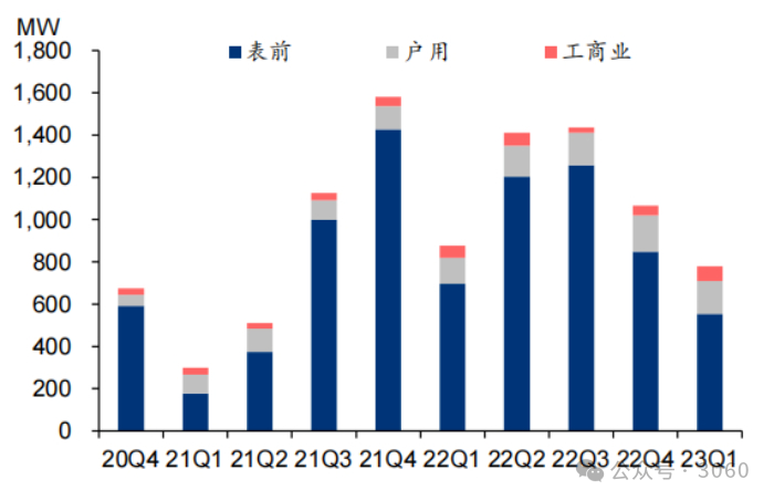 据Wood Mackenzie,2022年美国储能新增装机量为4.80GW/12.18GWh,同比+34.2%/11.8%。其中,电网级/户用/工商业储能按能量容量计算的新增装机占比分别为86%/11%/3%,项目以表前大储为主,户储维持稳定增长。22年美国新增户储装机631MW/1537MWh,同比+45%/36%;23Q1为155.4MW/388.2MWh,同比+7%/+36%。备用电源需求与政策加码下,我们看好美国户储市场持续快速增长。