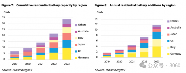 图7:累计户用电池容量(以区域计)图8:年度户用新增电池(以区域计)