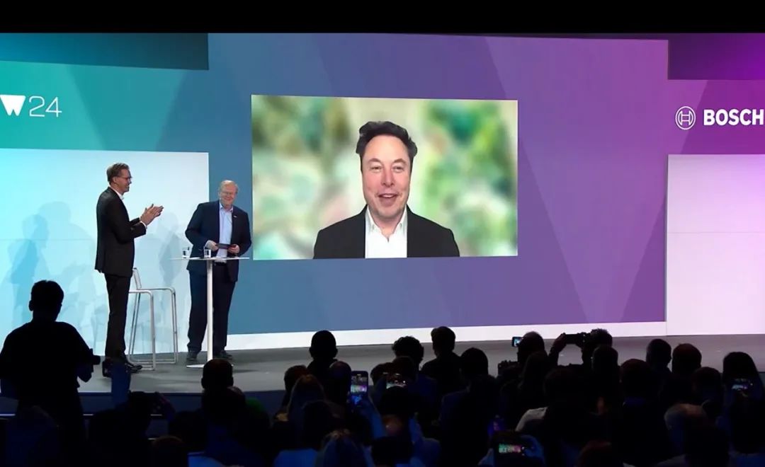 图说:2月29日马斯克远程出席“博世互联世界2024”大会