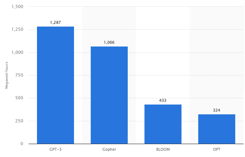 图说:2022年训练基于AI的大型语言模型时的能源消耗(单位:MWh)
