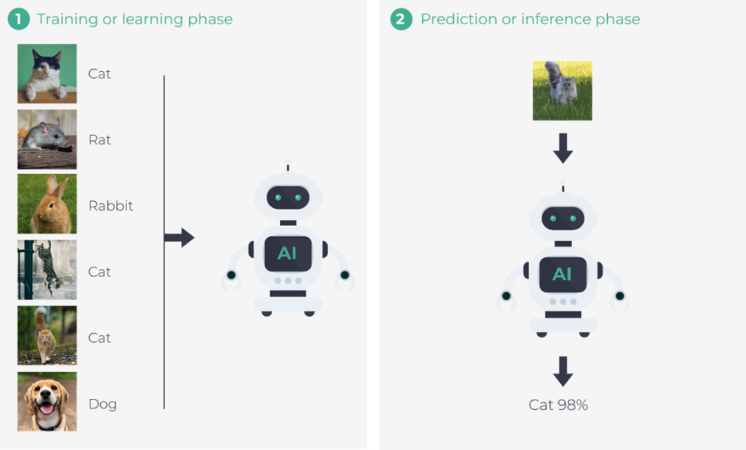 图说:人工智能创建涉及的两个阶段:训练阶段和推理阶段