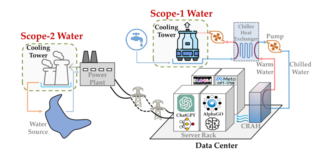 无论是训练阶段还是推理阶段,人工智能都离不开大规模的数据中心。而数据中心服务器运行的过程中会产生大量热量,水冷是服务器最普遍的方法,这就导致了巨大的水资源消耗。
