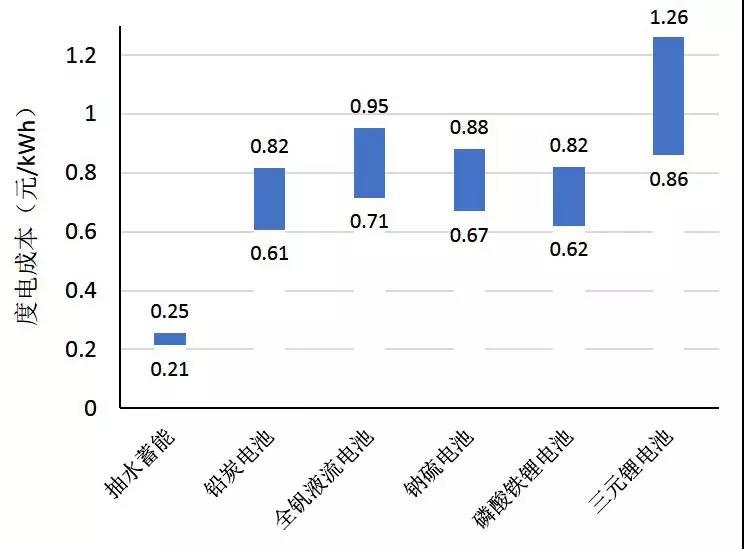 目前已商业化应用的储能技术有抽水蓄能、铅蓄电池和磷酸铁锂电池。综合调研数据获知,目前抽水蓄能电站的投资成本为60~64亿元/GW,抽水蓄能的系统能量成本为120~170万元/(MW·h),未来随着选址经济性的降低,系统成本会有一定程度上升。铅蓄电池的系统能量成本在95~125万元/(MW·h),受上游铅价及环保回收管控压力的影响,未来系统成本降低的空间很小。磷酸铁锂电池作为目前商业化应用的综合性能较高的典型储能技术,系统能量成本为150~230万元/MWh,未来随着低成本创新电池结构和工艺的开发,其成本还有继续下降的空间。