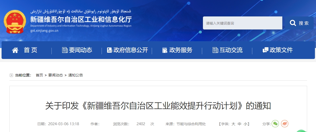 关于印发《新疆维吾尔自治区工业能效提升行动计划》的通知