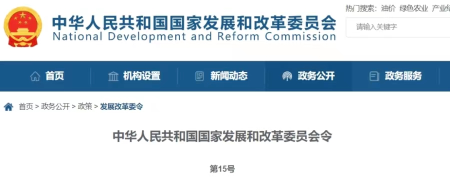 3月18日,中华人民共和国国家发展和改革委员会令第15号发布。