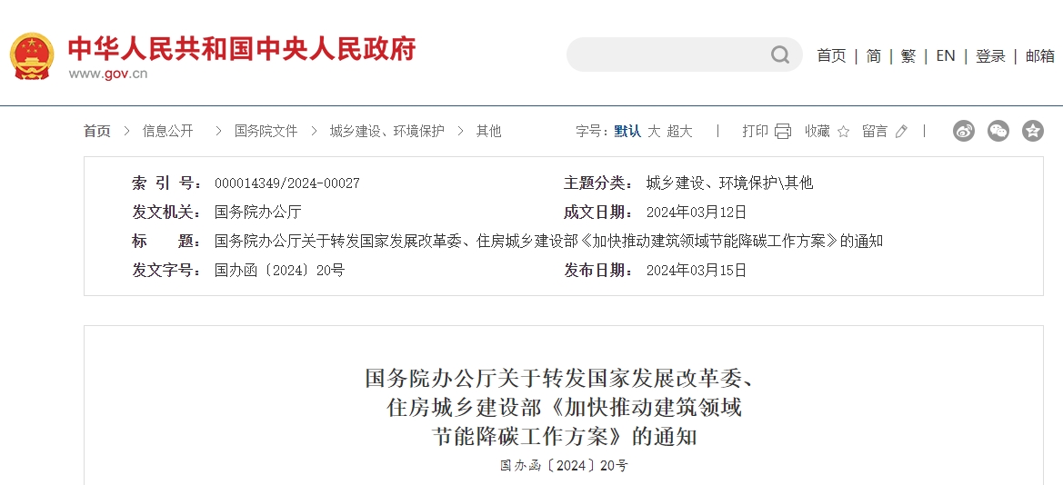 3月15日,国务院办公厅转发国家发展改革委、住房城乡建设部《加快推动建筑领域节能降碳工作方案》。
