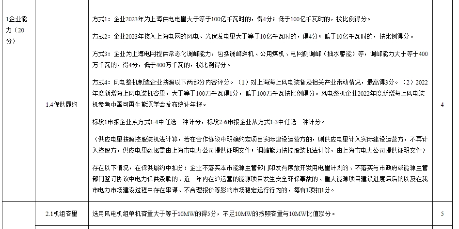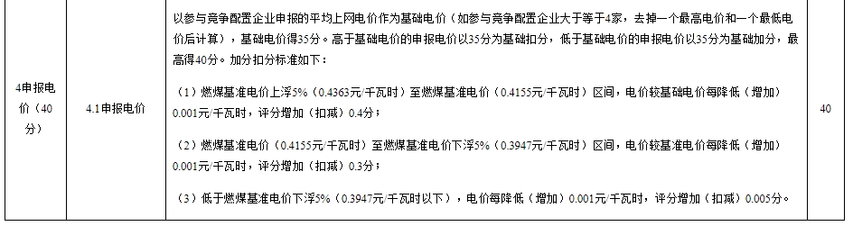专家评审采用综合评分法,主要包括企业能力(20分)、设备先进性(15分)、技术方案(25分)、申报电价(40分)等竞争要素,详细评分指标和分数权重详见附表。