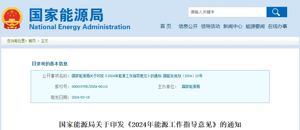 国家能源局关于印发《2024年能源工作指导意见》的通知
