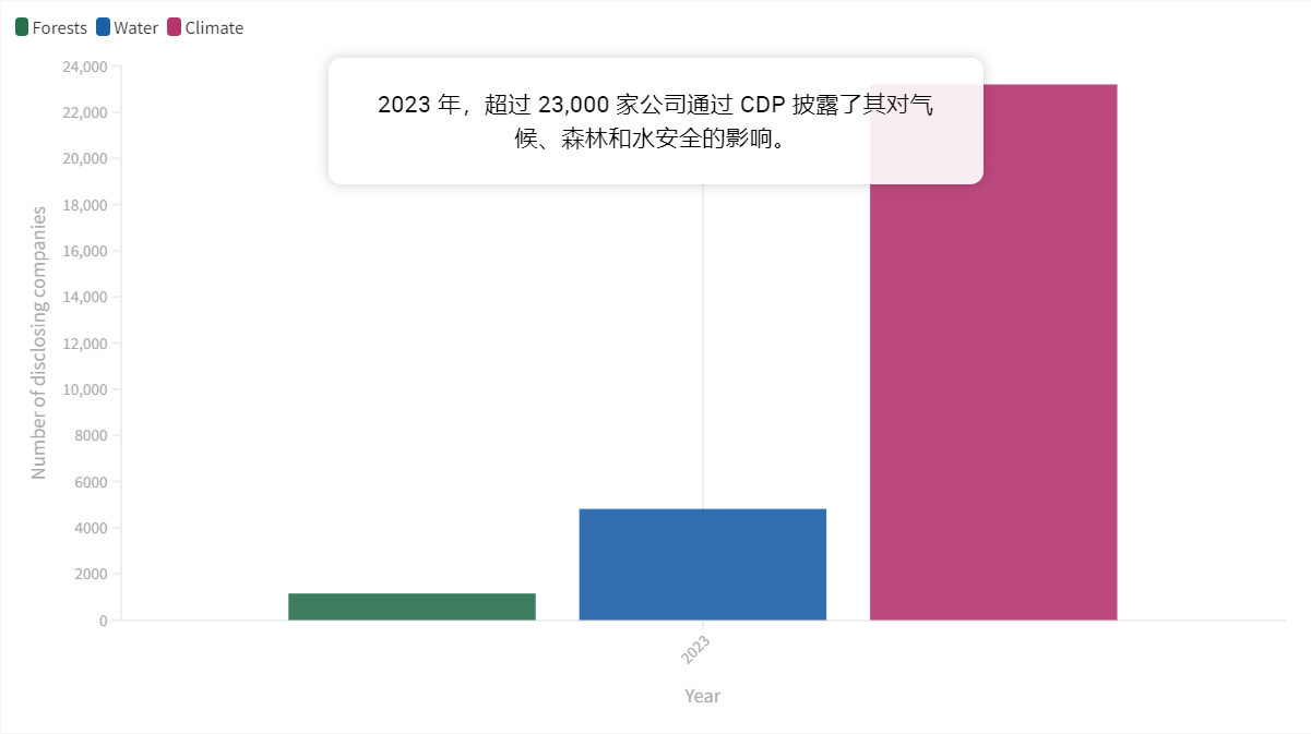 从结果来看,去年通过CDP披露的公司数量创下历史新高,达到了23,000多家,占全球市值的至少三分之二,披露公司数量比去年增加了24%。