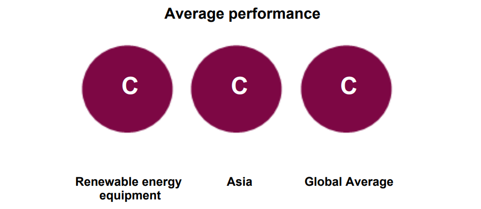 今年CDP评价整体趋严,全球全行业和亚洲行业的平均分数仅为C等级,全球新能源行业平均分数也仅为C。