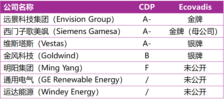 注*:调研过程中未发现西门子歌美飒关于EcoVadis公开成绩,该成绩为其母公司西门子能源(Siemens Energy)的EcoVadis分数