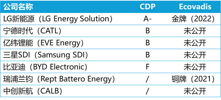 中国企业除了瑞浦兰钧在2021年度参与了EcoVadis的评级获得了铜牌之外,尚未查到有其他头部电池企业参与了EcoVadis的评级。