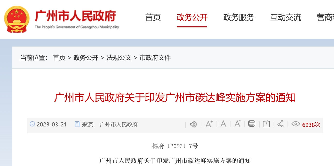 日前,广州市人民政府正式印发《广州市碳达峰实施方案》通知。