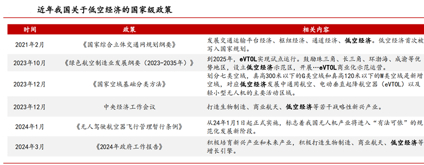 2024年,“低空经济”首次被写入政府工作报告,报告提出:“积极打造生物制造、商业航天、低空经济等新增长引擎。”