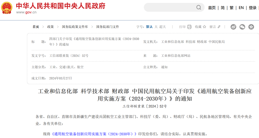 图说:四部门印发《通用航空装备创新应用实施方案(2024-2030 年)》