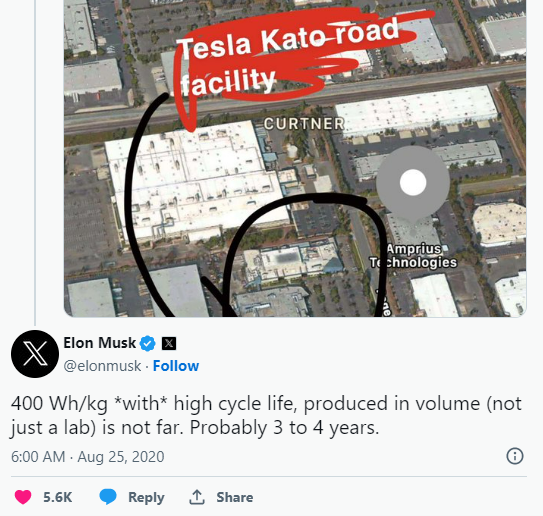 图说:马斯克更新对于400 Wh/kg电池的预测
