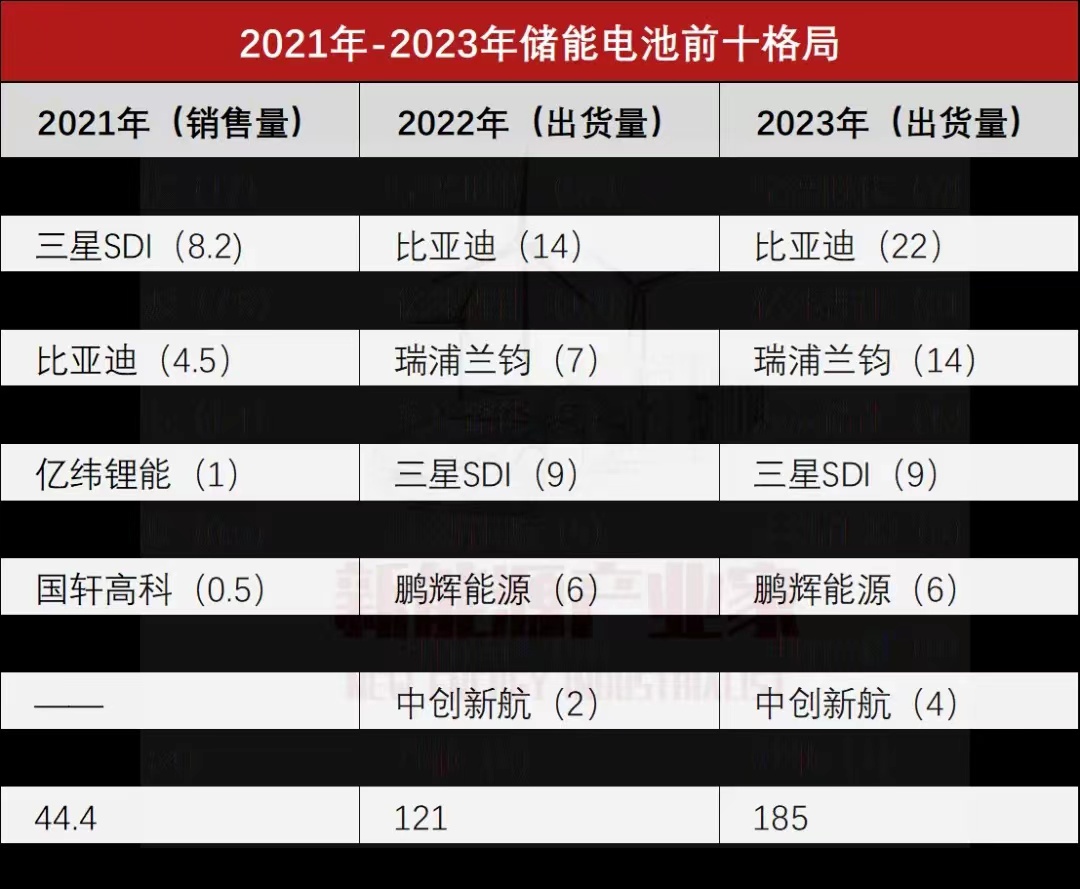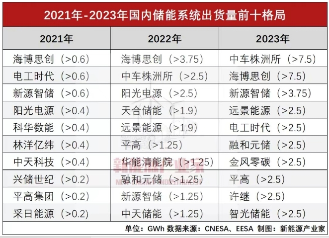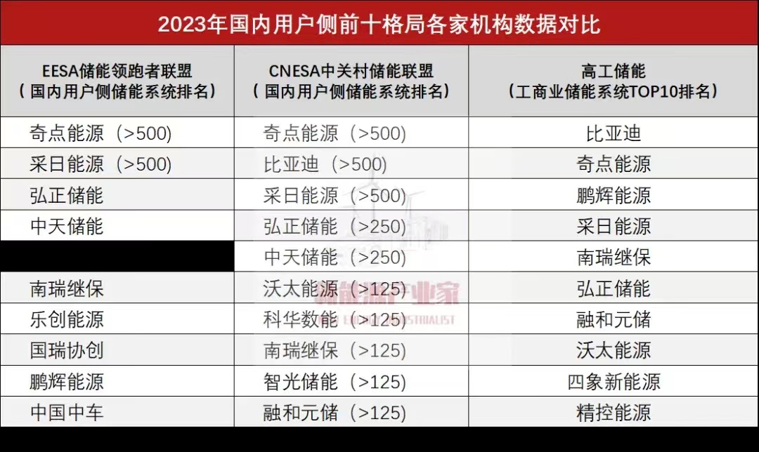 各家调研机构对于储能上下游的出货统计,2023年储能竞争格局得以清晰地展现。