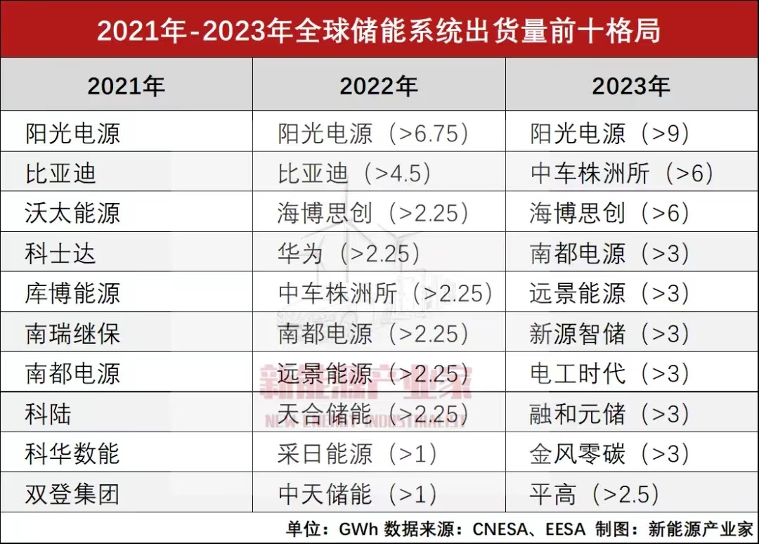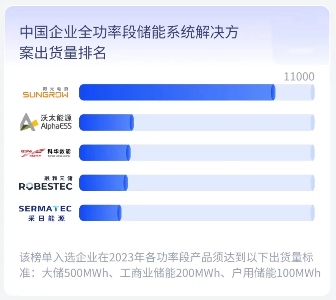 例如阳光电源(不过阳光电源宣布不参加国内储能出货量榜单的统计),依托全球化的光储布局,在2023年完成了超高速增长。据中关村储能联盟的统计,阳光电源以超过10GWh的成绩居榜首,连续第八年位居第一。