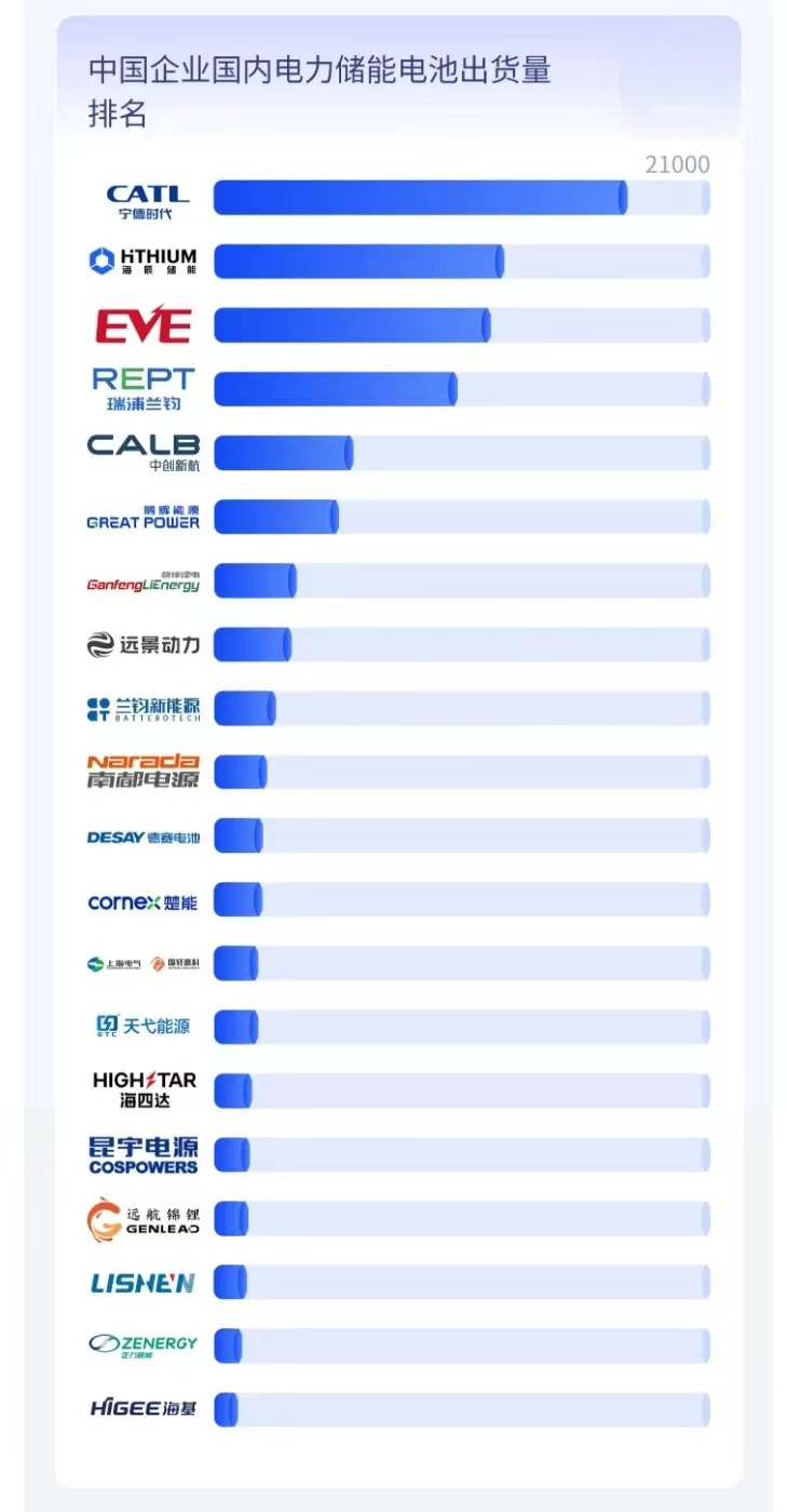 2023年中国企业国内电力储能电池出货量排名 数据源:储能领跑者联盟