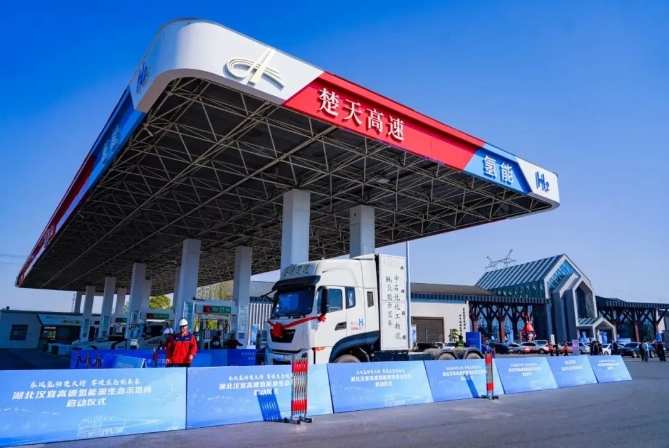 此次投营首发的湖北汉宜高速氢能源生态示范线,是湖北交投集团子公司楚天高速联合东风汽车集团、中国石化湖北石油分公司、湖北安捷物流等多家产业链上下游头部企业,依托楚天高速所辖服务区区位优势,在核心节点布局建设加氢站构建“汉宜”氢能源走廊.。目前,该线路已在汉宜高速潜江、枝江西服务区各建成加氢站2座。