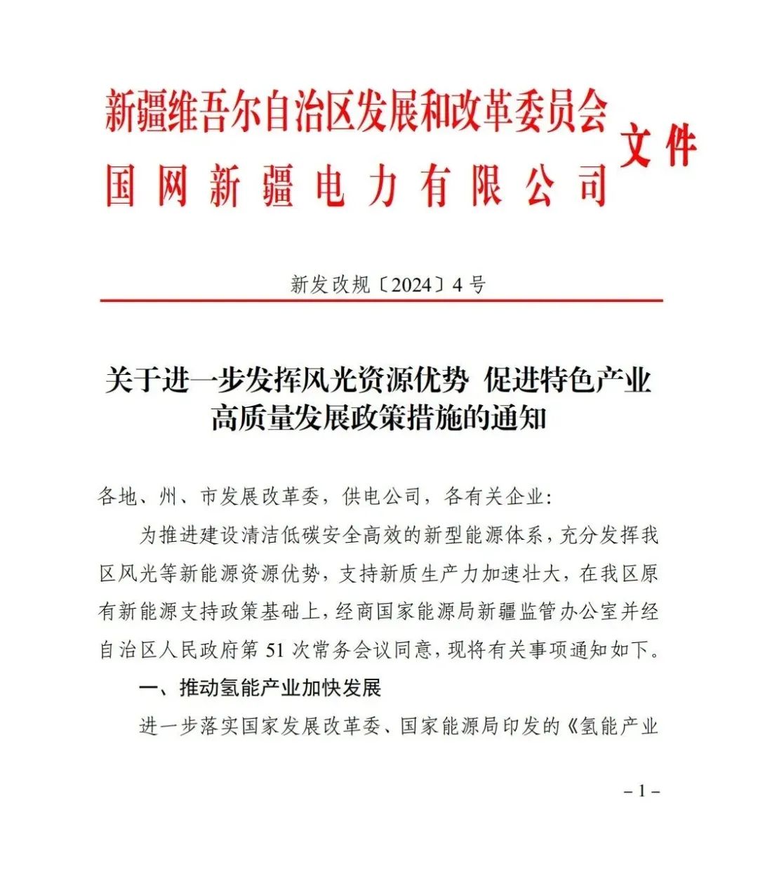 日前,新疆发改委发布《关于进一步发挥风光资源优势 促进特色产业高质量发展政策措施的通知》。
