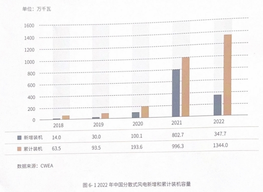 数据显示,截止2022年底,中国分散式风电累计装机容量1344万千瓦,主要分布在河南、陕西、山西、内蒙古、新疆五个地区。