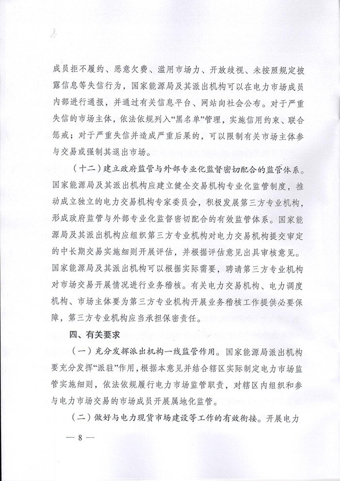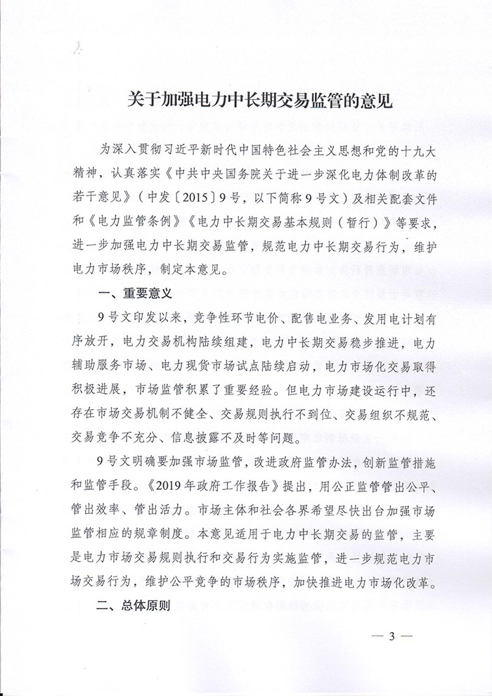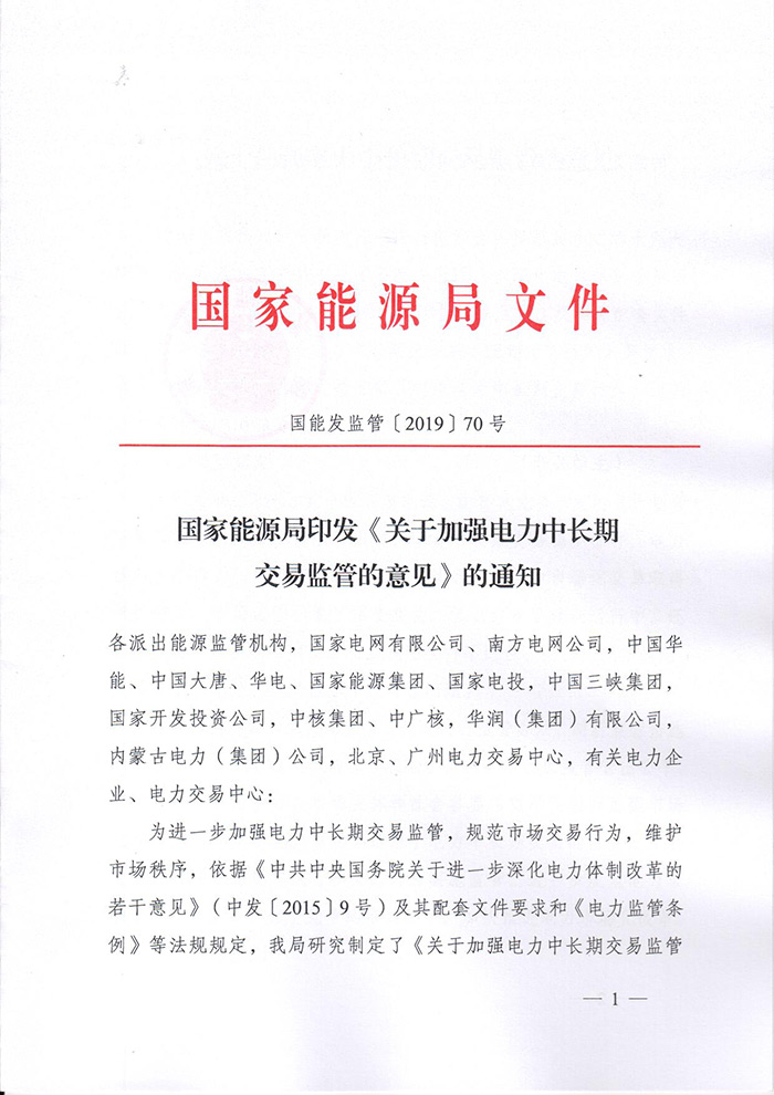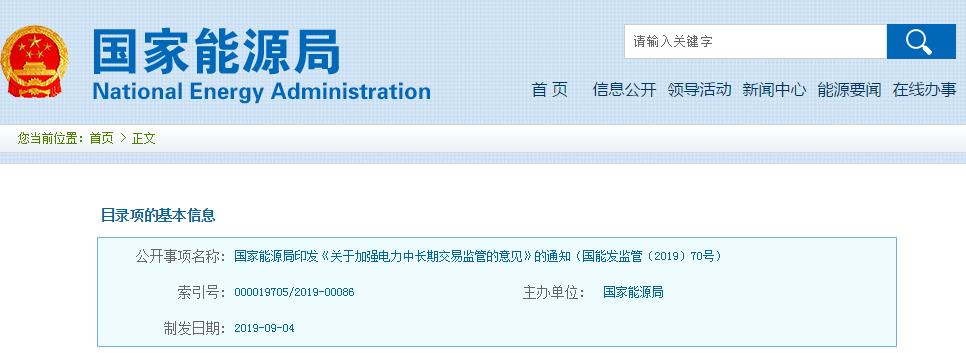 国家能源局印发《关于加强电力中长期交易监管的意见》的通知