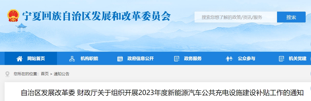 日前,宁夏回族自治区发改委发布《关于组织开展2023年度新能源汽车公共充电设施建设补贴工作的通知》。
