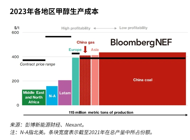 中东和美国是最具竞争力的生产国,因为天然气价格低廉且储量丰富。2005-2022年这两个地区的平均生产成本分别为115美元/吨和218美元/吨。相比之下,欧洲的生产成本为364美元/吨,中国的煤基生产成本为351美元/吨。