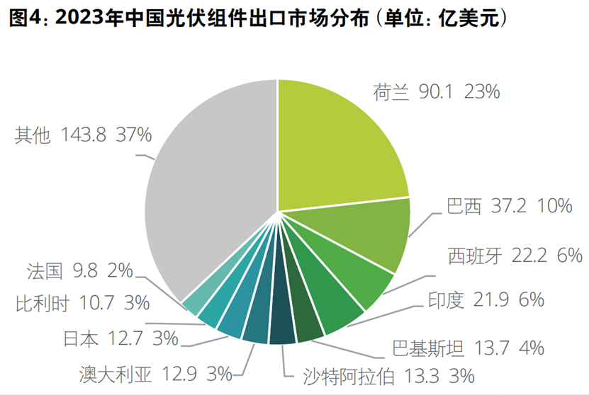 图说:2023年中国光伏组件出口市场分布(单位: 亿美元)