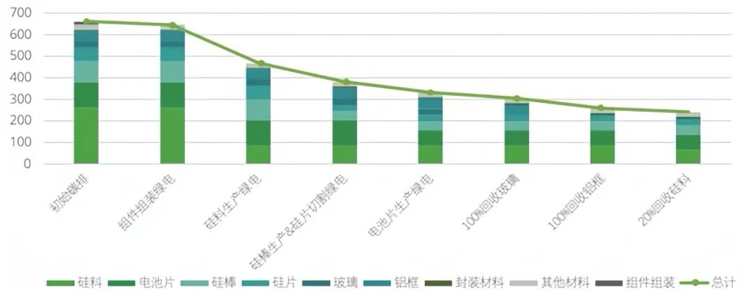 使用化石能源作为背景能源的光伏组件碳排放将大大高于比使用可再生能源为背景的光伏组件碳排放。
