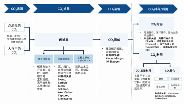 CCUS是指可有效用于捕集二氧化碳的技术,可以将生产过程中排放的二氧化碳捕集、封存,或者进行提纯后投入到新的生产过程中循环再利用,是目前为止唯一能够大量减少工业流程温室气体排放的手段,也是应对全球气候变化的关键技术之一。
