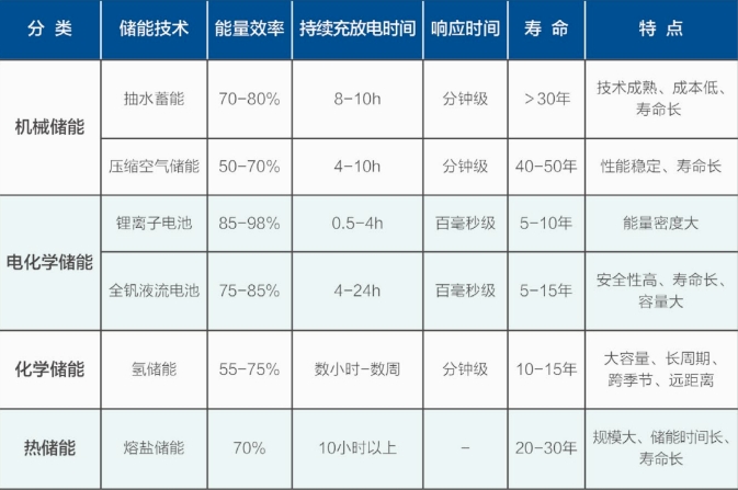 长时储能技术种类较多,包括抽水蓄能、压缩空气储能、液流电池储能、储热蓄冷、储氢等这些技术为可再生能源的大规模利用提供强有力的支撑。