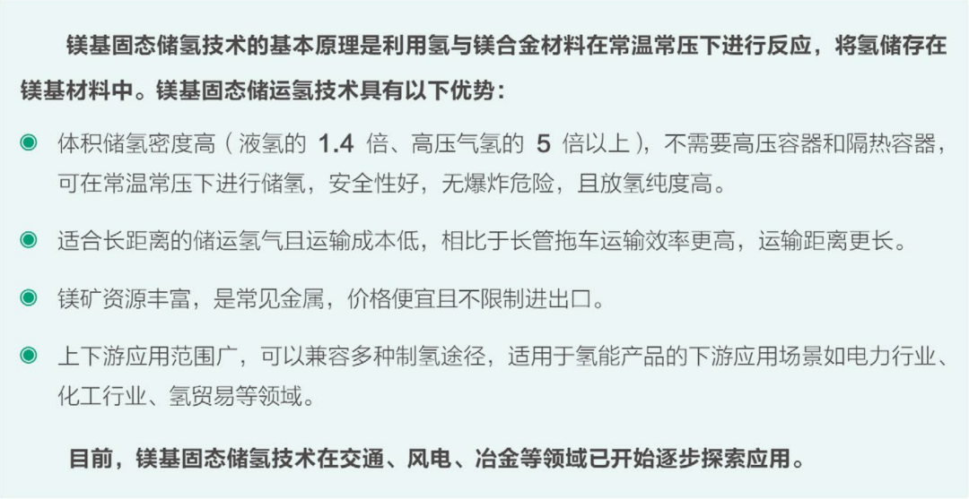 根据固态储氢材料不同可分为物理吸附储氢材料和化学吸附储氢材料。目前,化学吸附储氢材料中金属氢化物最为成熟,如镁基固态储技术。