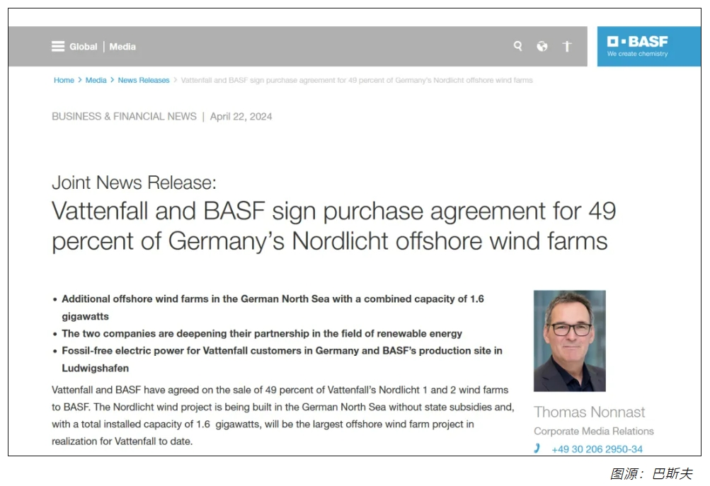 再次加码绿电!巴斯夫收购“北光”离岸风电场49%股份
