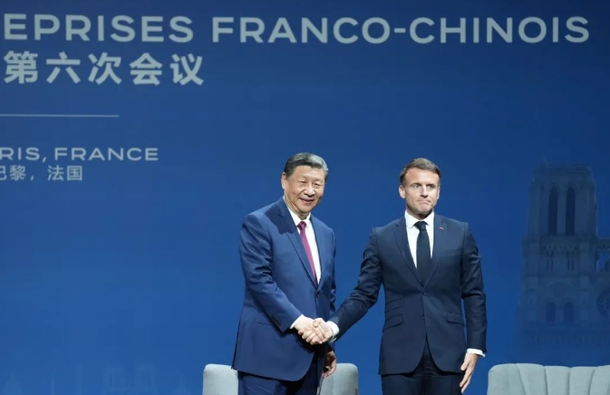 5月6日下午,国家主席习近平在巴黎同法国总统马克龙共同出席中法企业家委员会第六次会议闭幕式,并发表题为《继往开来,携手开创中法合作新时代》的重要致辞。会议上,中法企业家就中法“创新与产业合作”、“绿色经济与低碳转型”、“新兴技术与可持续发展”等主题进行讨论,相关企业还进行了合作签约仪式。