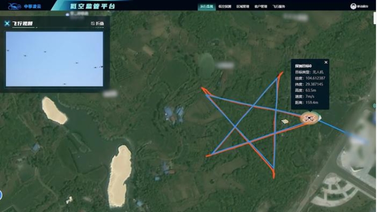 工作人员使用中移凌云低空监管平台监测低空飞行物情况